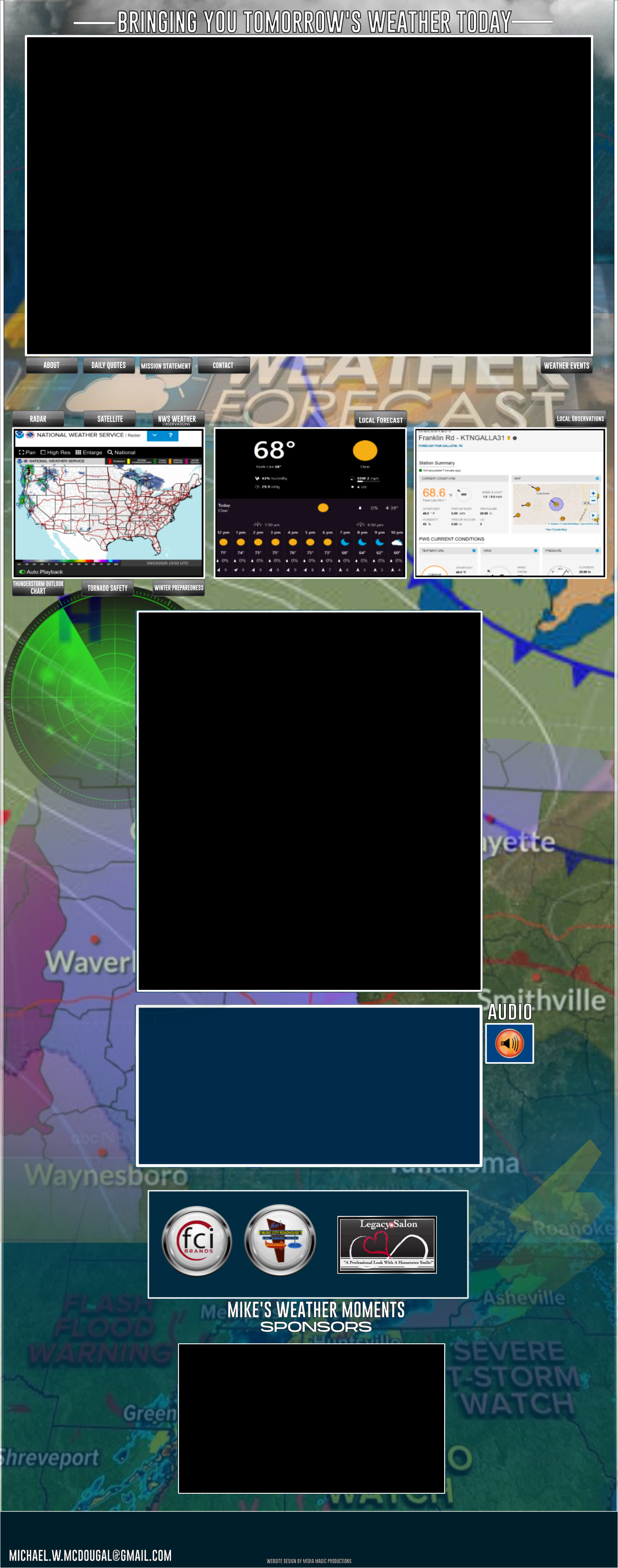 Good day, everyone! Welcome to Mike’s Weather Moment! Our website www.mikesweathermoment.com is both safe and secure to browse around in. Here you can see the local weather conditions and forecast, radar and satellite imagery, along with National Weather Service Hazard Conditions, and the Convective Thunderstorm and Severe Weather Outlook. In the event of Severe Weather in Middle Tennessee especially for Gallatin and Sumner County, I will provide a detailed weather forecast along with critical updates in which folks can plan and prepare for their daily activities. Many of the weather charts which are posted will be in ZULU time. To convert into central time just subtract 6 hours. Example: 1200 Zulu or Z equals 0600 am.